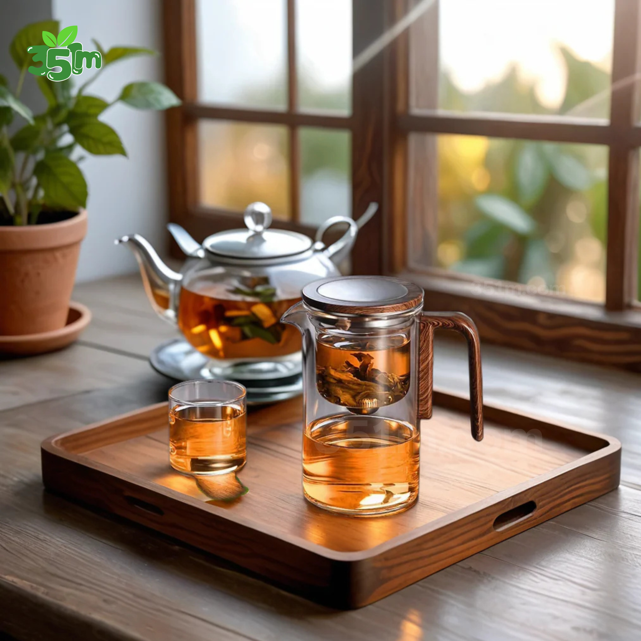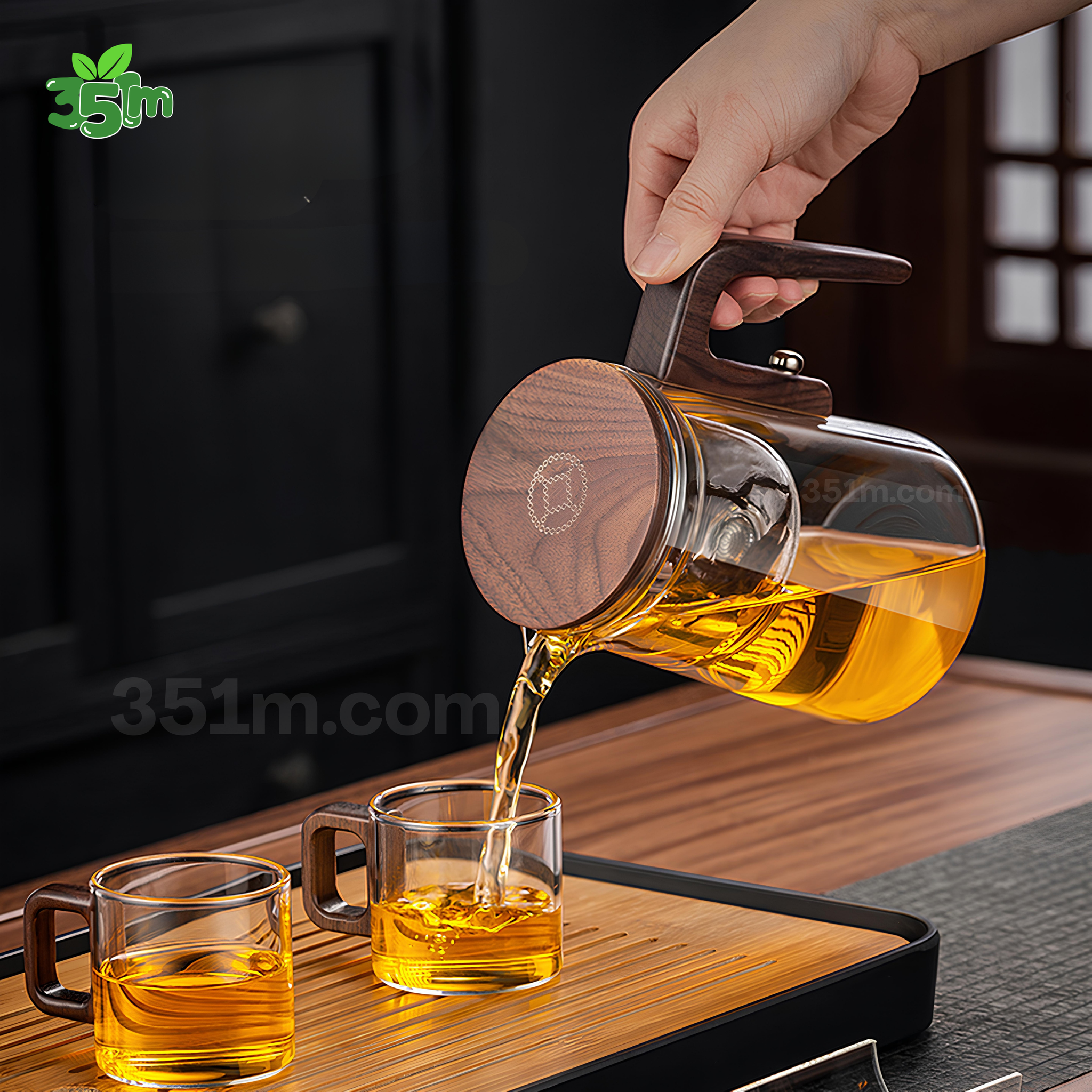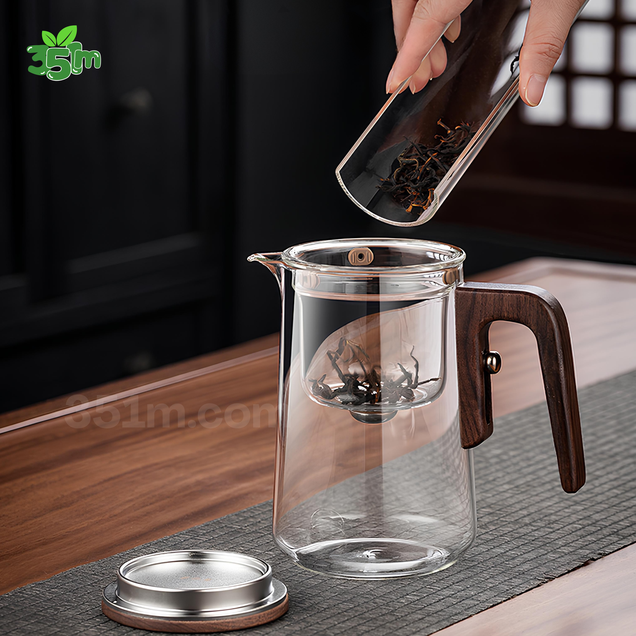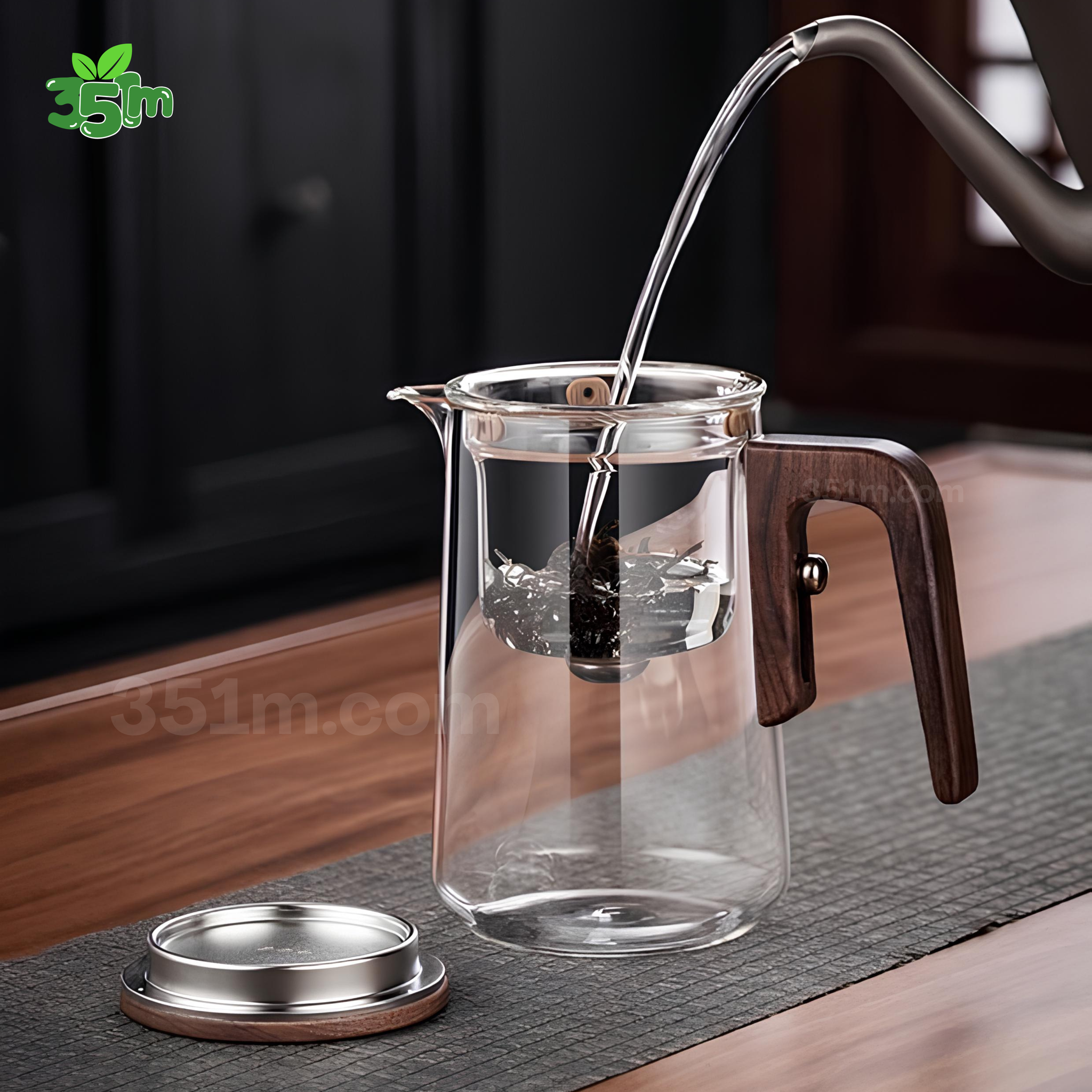 Un style minimaliste avec une poignée en bois de noyer. Élégant et confortable, idéal pour le thé quotidien.